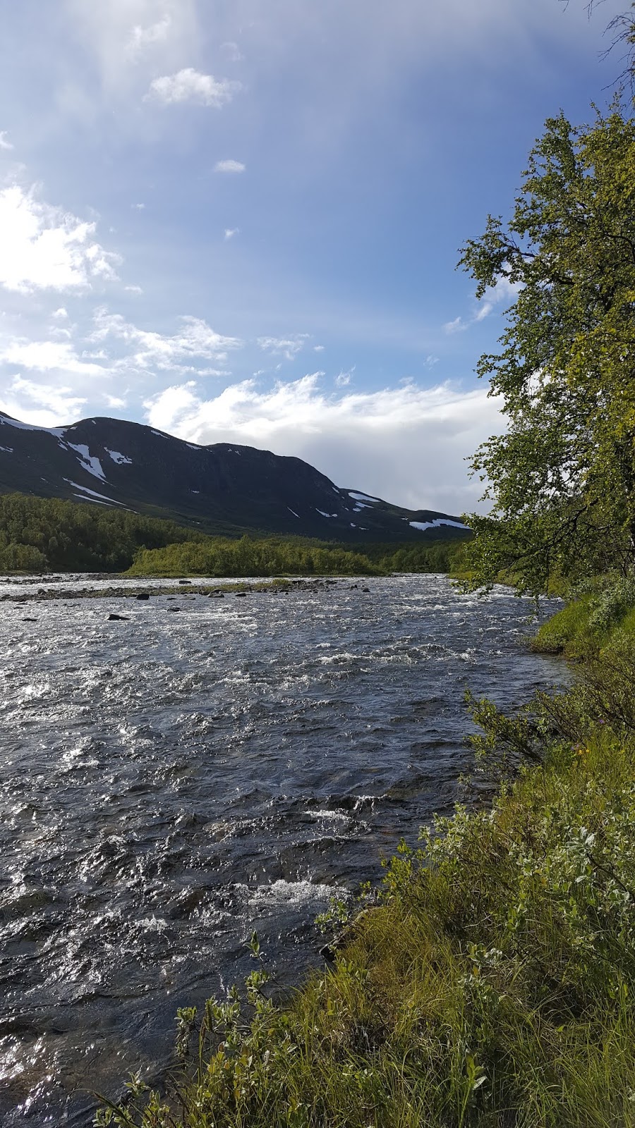 Sista vandringsdagen i Vitnjulstugan kliver jag upp tidigt. Jag är inte helt utsövd då några myggor har pockat på uppmärksamhet under natten. Den tidiga morgonen inspirerar med sina fina solgenombrott över fjället.